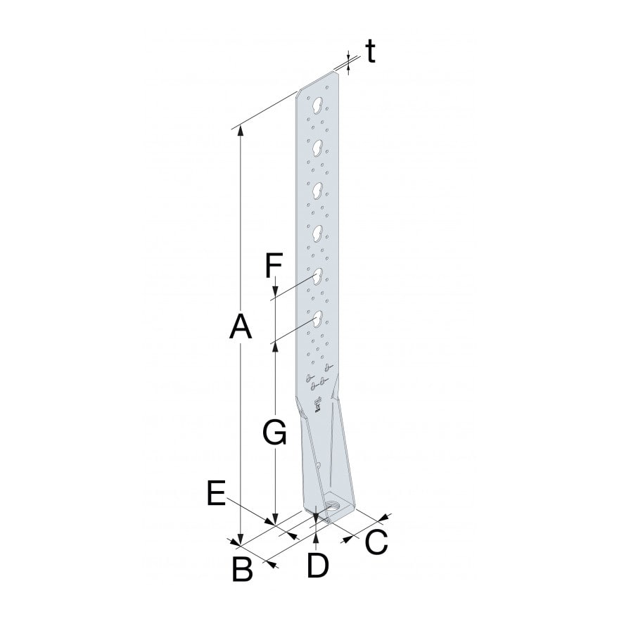 Garā vertikālā kāja ļauj pievienot nepieciešamo stiprinājumu skaitu (CNA naglas un CSA skrūves) vertikālā stabā un joprojām atbilst attiecīgajiem standartiem attiecībā uz stiprinājumu atstatuma prasībām.