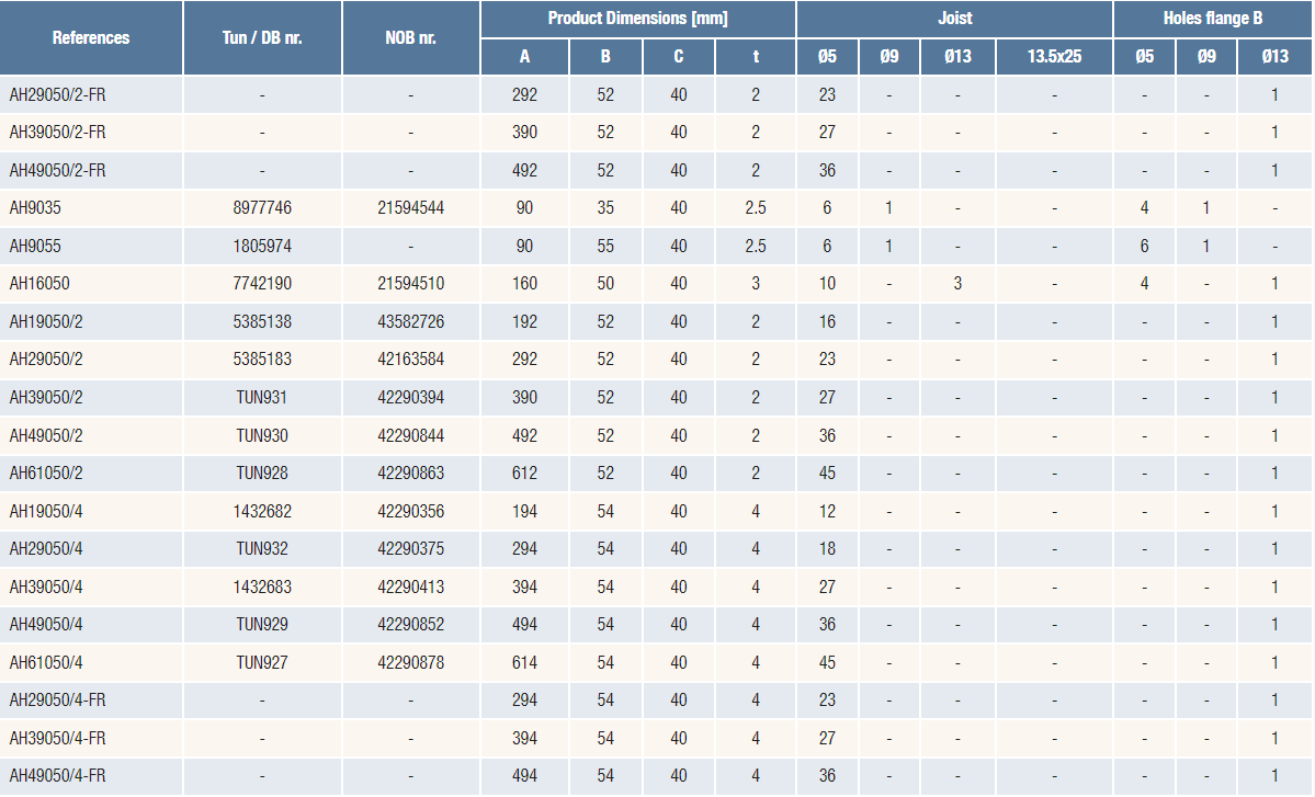 AH29050/2 ir metāla stiprinājums, ko ražo SIMPSON Strong-Tie, un tas tiek izmantots, lai stiprinātu koka konstrukcijas, piemēram, balstus, soliņus un kāpnes, pie metāla struktūrām, piemēram, stabiem, režģiem un balstiem. SIMPSON Strong-Tie AH29050/2 stiprinājums ir izgatavots no cinkota tērauda, kas nodrošina izturību pret koroziju. Tas ir izstrādāts, lai atbilstu ASCE 7 un koka konstrukciju kodeksa prasībām, un tam ir pieejams inženierzinātņu atbalsts.