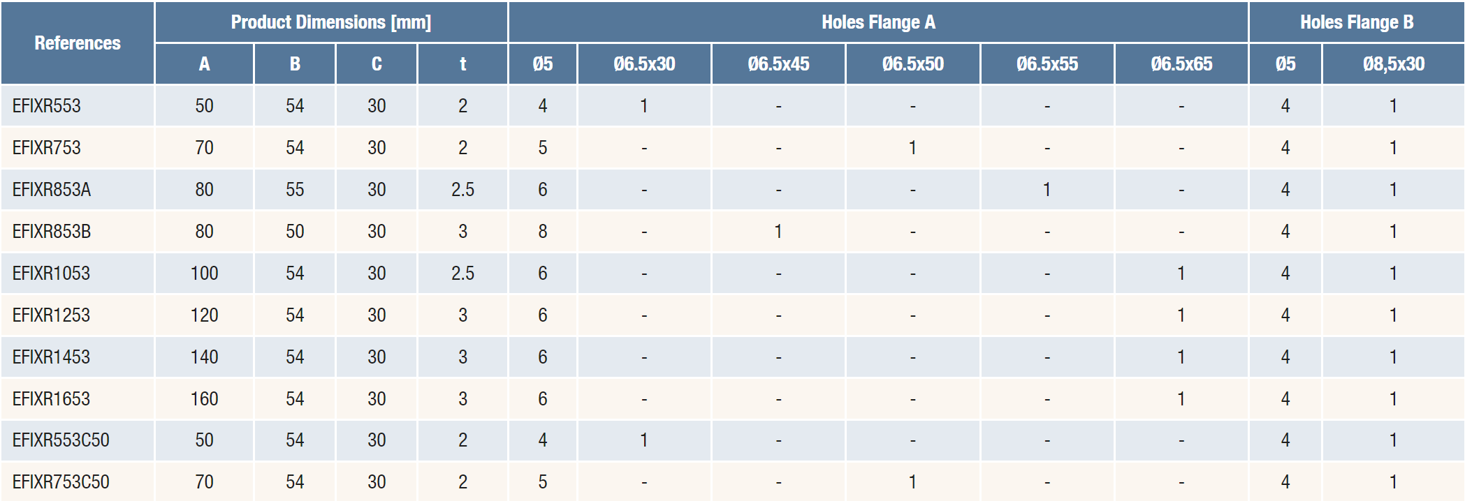 Cinkota tērauda regulējams leņķis. EFIXR leņķa būvkalumi ir paredzēti visa veida koka konstrukciju projektiem. Pateicoties savam unikālajam dizainam, šis leņķis ir ļoti universāls un to ir viegli izmantot dažāda veida konstrukciju nostiprināšanai. EFIXR uzlabo stingrību īpaši lieliem modeļiem.