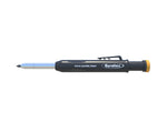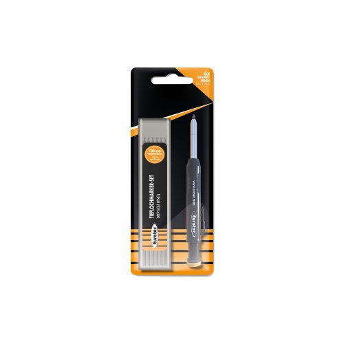 Marķieris ir aprīkots ar izvelkamu metāla uzgali un integrētu asināmo vāciņā, kas ļauj uzturēt smalku rakstīšanas virsmu precīzām atzīmēm. Komplektā iekļauta arī papildus uzpildes kārbiņa ar sešiem grafīta stieņiem, kas nodrošina ilgstošu lietošanu bez nepieciešamības pēc biežas nomaiņas. Praktisks metāla klipsis ļauj ērti piestiprināt marķieri pie kabatas vai instrumentu jostas.