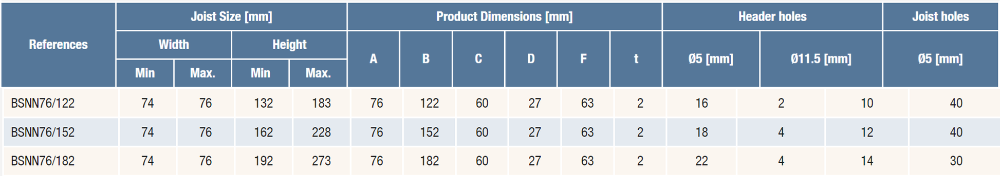 Produktu apraksts un pilna specifikācija ražotāja mājaslapā: Face Fix Hangers - BSNN | Simpson Strong-Tie (strongtie.lv)