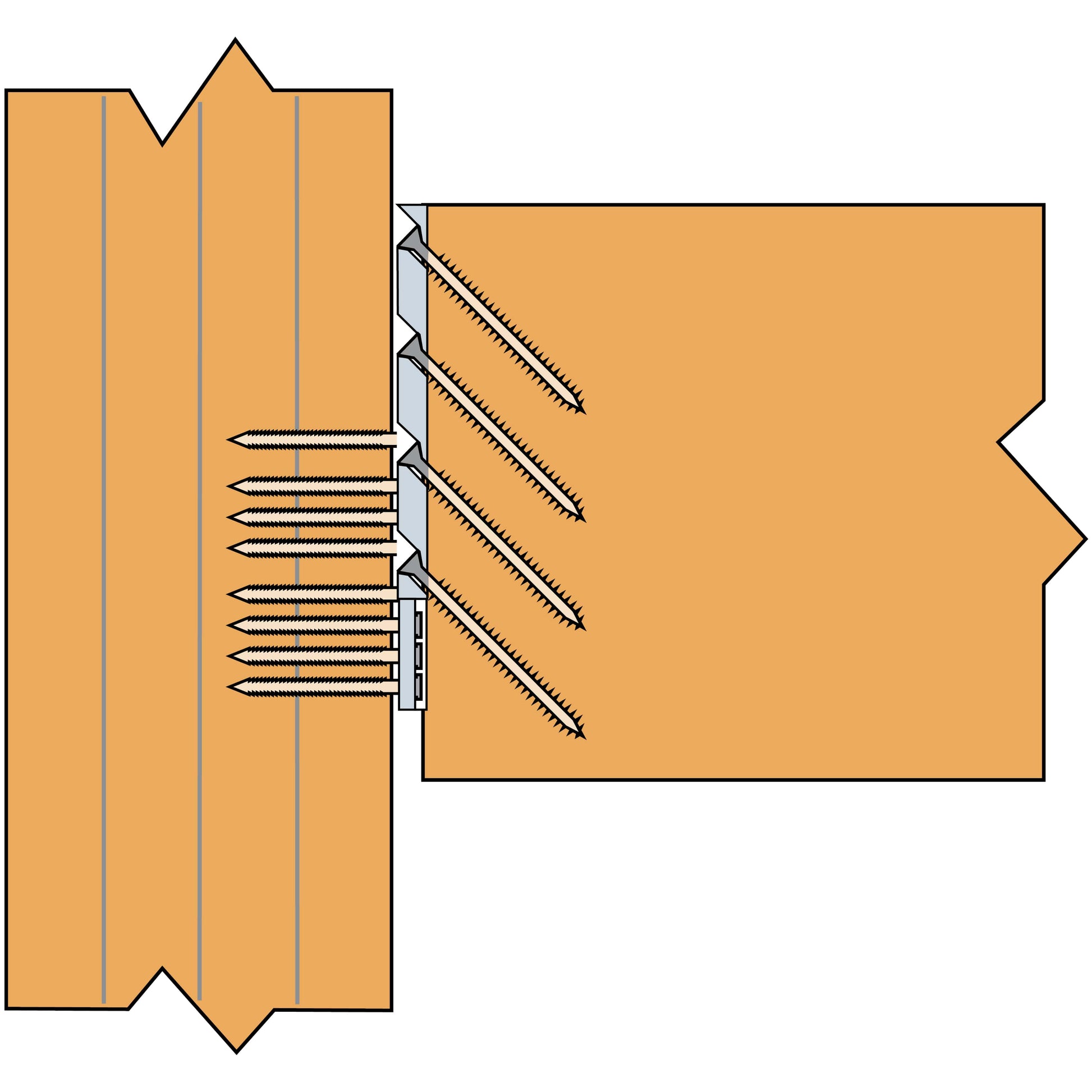 Alumīnija slēptais siju savienojuma stiprinājums. ETB slēptais savienojuma stiprinājums ir divās daļās. Pirmā daļa ir ievietota plaknē, pie kuras jānostiprina sija un nostiprināta ar naglām, bet otrā daļa ir piestiprināta sijas galā ar skrūvēm.
