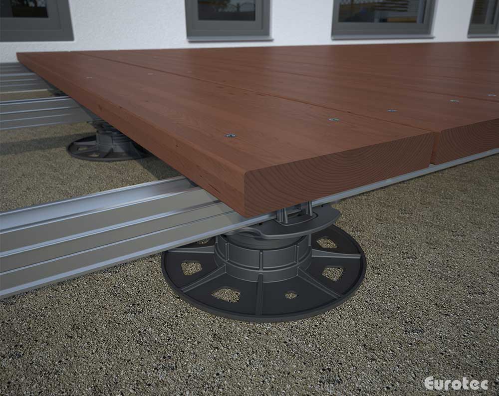 SL BASE L regulējamais terases balsts ir izstrādāts, lai vienkāršotu terases konstrukciju montāžu, nodrošinot precīzu un stabilu koka vai alumīnija apakškonstrukcijas līmeņošanu. Tas ir aprīkots ar pašizlīdzinošu galvu, kas ļauj kompensēt nelīdzenumus pamatnē, kā arī veidot 1–2 % slīpumu ūdens novadīšanai no terases virsmas.