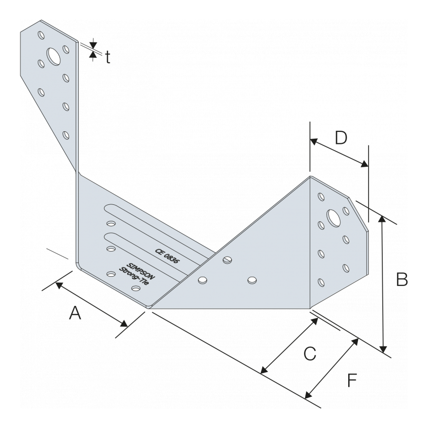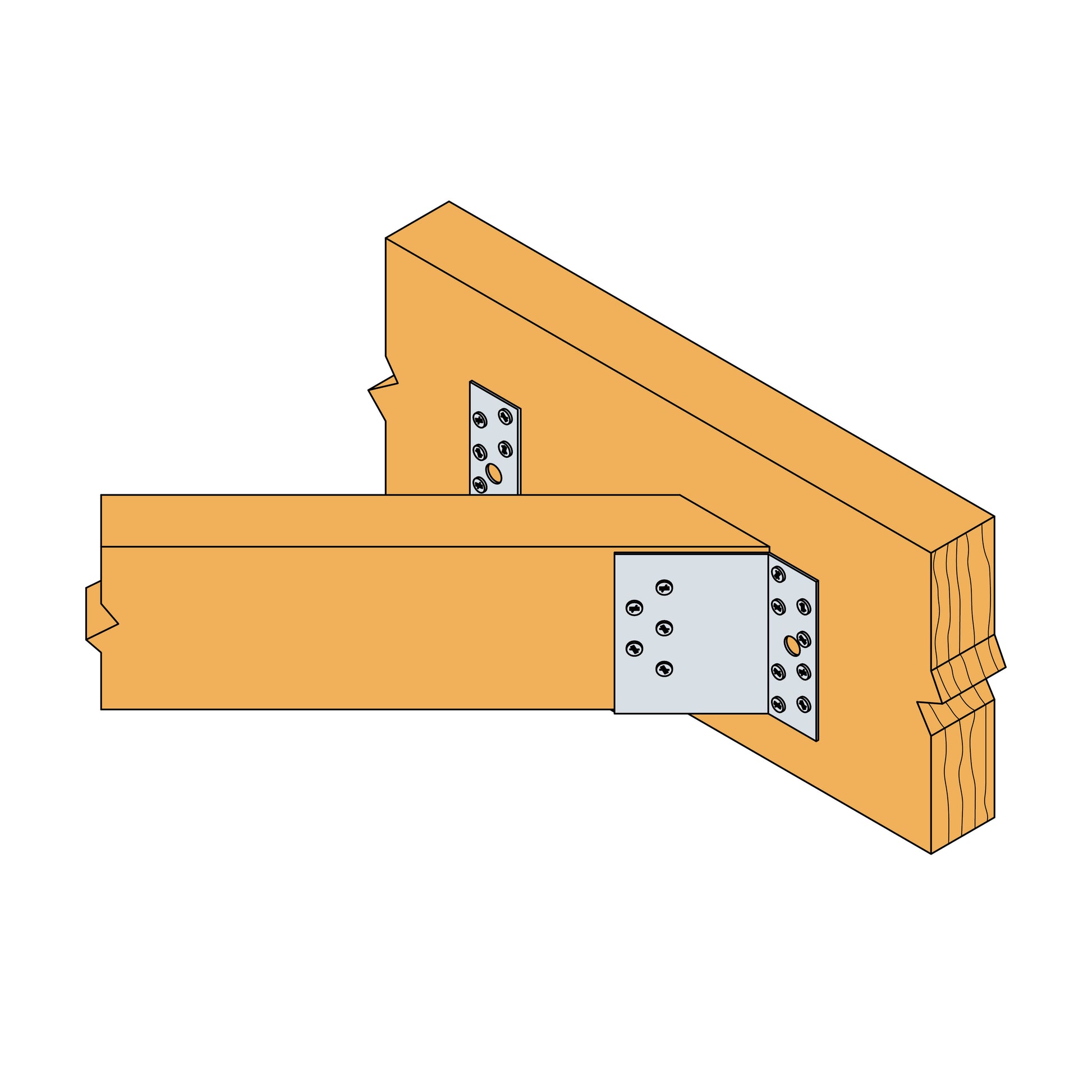 Cinkots tērauds 20 µm. Brusu kurpe 45° grādu leņķi (pa labi un pa kreisi). ET CE un ETA sertificētās brusu kurpes tiek izmantotas, lai atbalstītu slīpas koka sijas un elementus. Pārbaudīts un standartizēts ar 45° slīpuma leņķi pa kreisi vai pa labi.