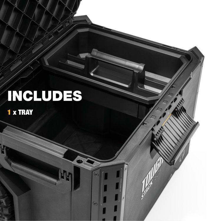 StackTech Rolling Tool Box ir sistēmas mobilais pamats, kuru visbiežāk izmanto kā pamatu visai kraujamo kastu sistēmai, jo to ir viegli pārvietot pateicoties ērtajam rokturim un ritenīšiem. Augšēja kastes virsmas daļa ir speciāli veidota tā, lai uz tās viegli un bez piepūles varētu stiprināt citas StackTech kastes vai puskastes. Piekļūšana stiprinājumiem un instrumentiem ir ļoti vienkārša ar labi pārdomātu centrālo kastes noslēgšanas mehānismu, kurš ir pastiprināts ar metāla stiprinājumu augšdaļa, lai kasti nevarētu atvērt no sāniem, ja tā ir aizslēgta. Iekšpusē jūs atradīsiet iekšējo paplāti, kas palīdzēs profesionāļiem uzturēt kārtību un sadalīt kastes telpu starp stiprinājumiem un instrumentiem.
