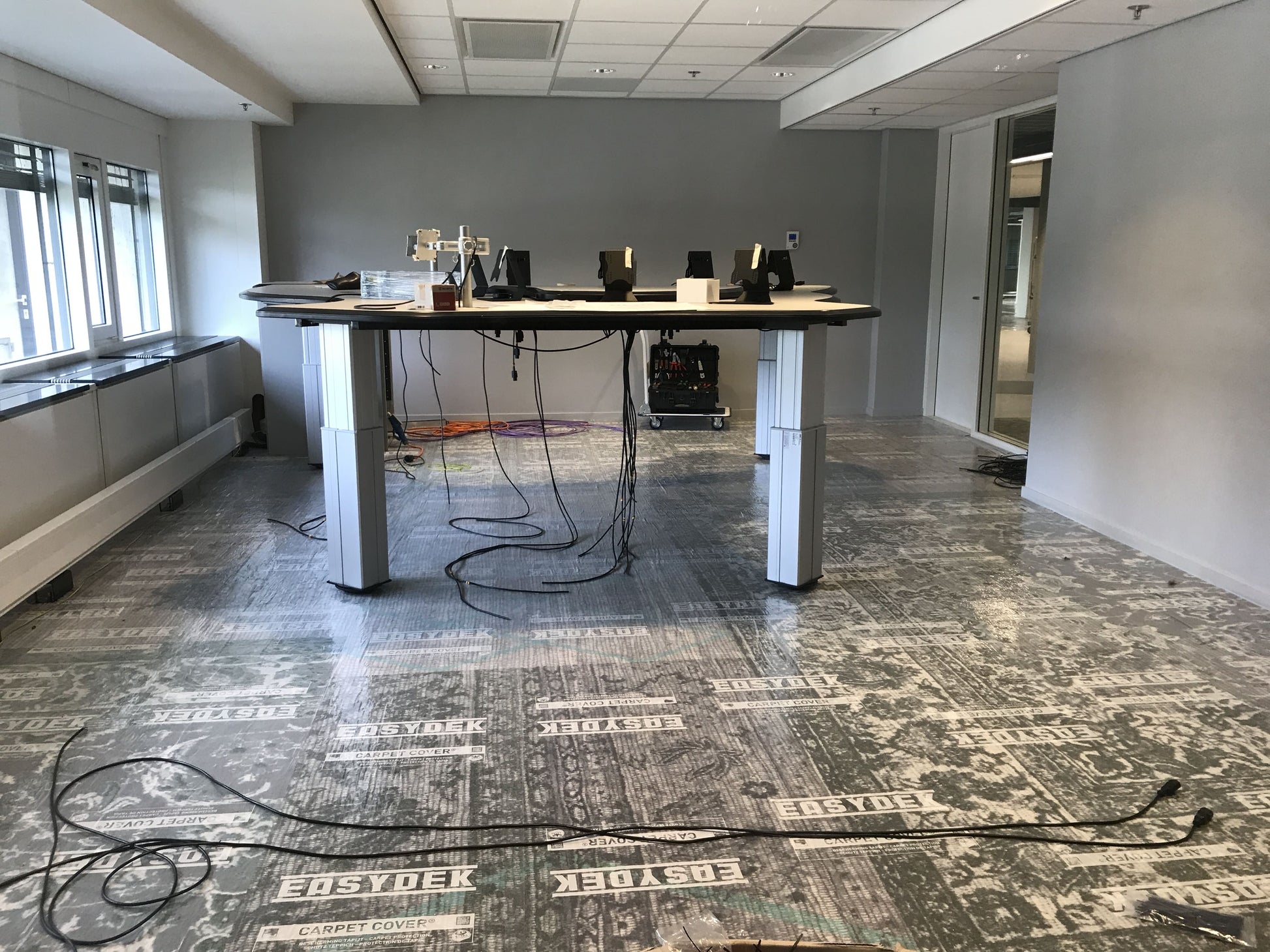 Use "Carpet Cover" during construction, renovation, and maintenance work. Covering the carpet with "Carpet Cover" is very simple. The protective film is rolled up so that the adhesive layer is on the outside. Unroll the "Carpet Cover" film with your hands or feet. If the area is very large, use an applicator to install even faster. After work, the "Carpet Cover" can be easily removed. Only a clean carpet remains.