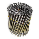 3.8x110 mm galvanized nails, coil collated at a 15° angle and feature a screw shank for maximum holding power in timber. The nails are coated with a galvanized finish, providing moderate corrosion resistance for both interior and protected exterior applications. Designed for use with pneumatic coil nailers compatible with 15° wire coil collation.
