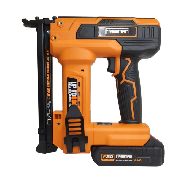 The stapler includes a quick-load magazine, battery status indicator and built-in protection against overheating and overload. It operates on the Freeman F20 battery platform, allowing the same battery to be used across multiple tools in the series.