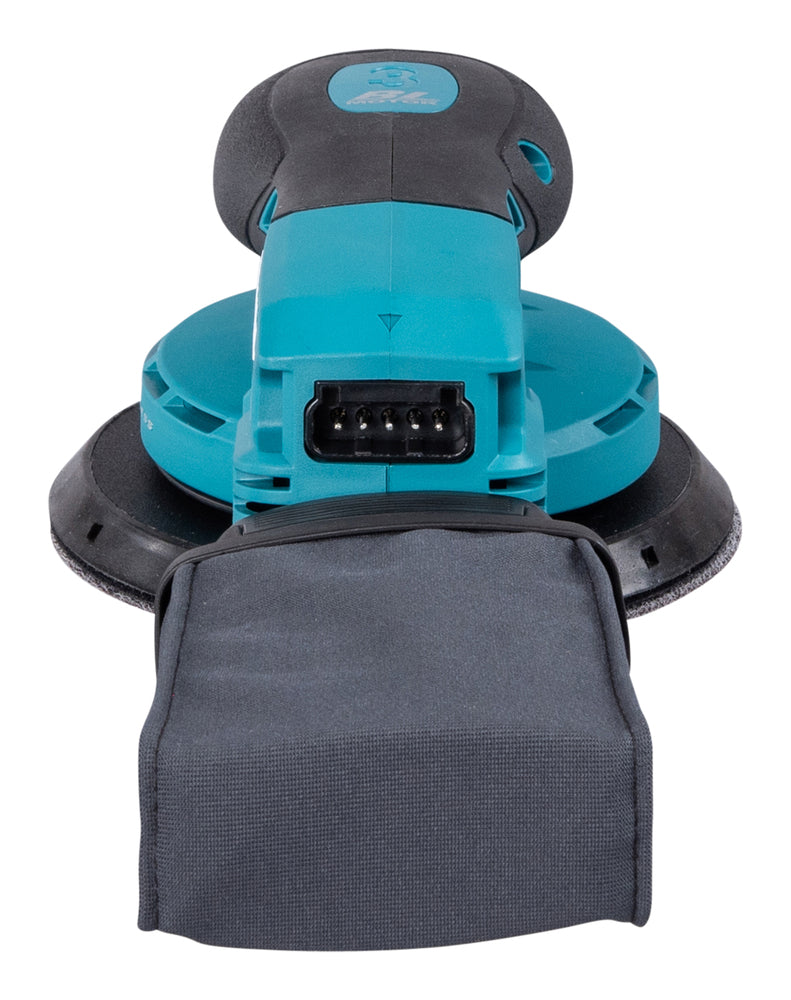The tool features an integrated dust extraction system and can be connected to a dust collector or compatible vacuum via AWS (Auto-Start Wireless System) for cleaner working conditions. XPT (Extreme Protection Technology) improves resistance to dust and moisture, allowing use in demanding site environments. The battery is connected via an adapter and cable, keeping the tool head compact and lightweight for comfortable overhead and vertical sanding. Hook & loop pad fastening enables quick, tool-free abrasive disc changes. Constant speed control, soft start, electric brake and anti-restart function improve both safety and surface quality.