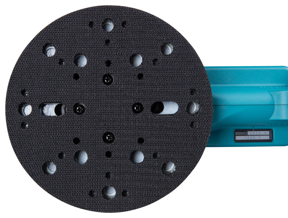 The Makita XGT® BO004CG is a 40Vmax brushless random orbital sander designed for professional fine sanding with a 150 mm backing pad and 3 mm orbit. The motor delivers a variable speed range of 6,000–10,000 min⁻¹, making it suitable for surface preparation, intermediate sanding and fine finishing on wood, paint, filler and metal surfaces.