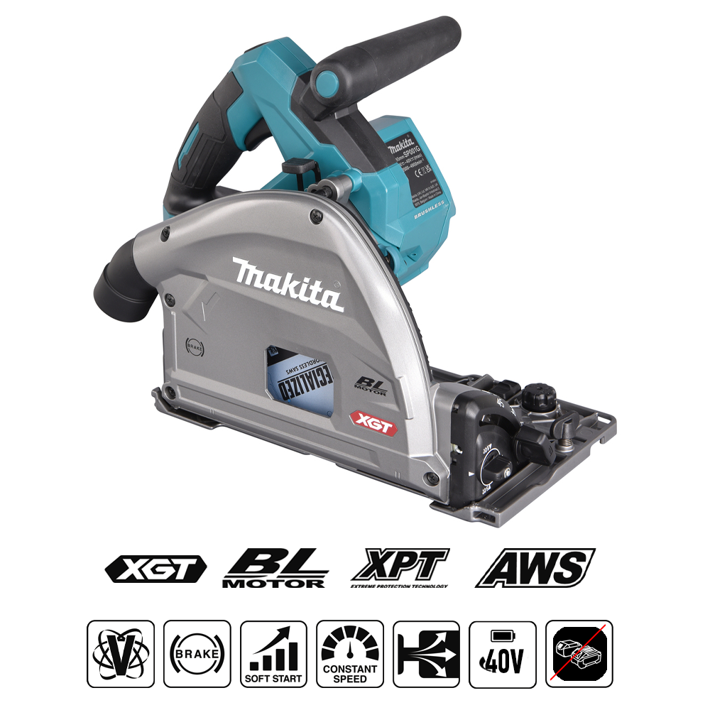 The Makita XGT® SP001G is a professional-grade 40Vmax plunge saw equipped with a powerful brushless motor, delivering speeds from 2,500 to 4,900 rpm. Designed for precise, clean cuts with up to 56 mm cutting depth at 90°, it’s ideal for high-demand carpentry and installation work.
