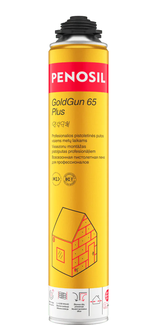 PENOSIL GoldGun 65 Plus is a premium-quality one-component polyurethane gun foam with increased yield, designed for demanding insulation and installation works. It provides effective thermal and sound insulation and is suitable for professional use even in harsh working conditions.