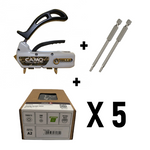 Komplektā ietilpst CAMO MARKSMAN PRO-NB5 instruments, kas piemērots dēļiem ar platumu no 83 mm līdz 127 mm un aprīkots ar 5 mm starpliku vienmērīgām spraugām. Tas nodrošina precīzu skrūvēšanu leņķī slēptai stiprināšanai.