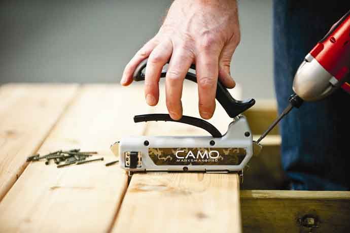 CAMO MARKSMAN PRO ir patentēts montāžas instruments, kas nodrošina precīzu, ātru un estētiski perfektu terases dēļu ieklāšanu. Iesakām izmantot CAMO, Ottensten vai HECO slēptās sistēmas terases skrūves diametrā līdz 4.5 mm slīpā leņķī uz dēļa sāniem, nodrošinot izturīgu, bet neredzamu stiprinājumu. Iebūvētā 5 mm starplika palīdz saglabāt vienmērīgu atstarpi starp dēļiem un veicina pareizu ventilāciju un materiāla dilstspēju.
