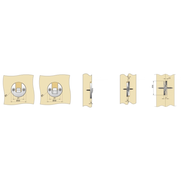 seklā montāžas dziļuma nepieciešamība – tikai 3 mm – padara DUO 30 ideāli piemērotu izmantošanai arī plānos materiālos, neapdraudot stiprinājuma drošību. Plāksnes var viegli un ātri pieskrūvēt ar standarta gremdgalvas skrūvēm, nodrošinot ērtu un ātru montāžu bez specializētiem instrumentiem.