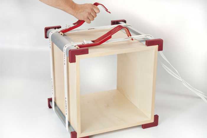 Clamping set ir sistēma skapju un dažādu citu komponentu līmēšanai mēbeļu ražošanā un ir Lamello sistēmas papildinājums. Saspiedēju komplekts sastāv no profila sekcijām malu aizsardzībai, 8 metrus garām siksnām ar spriegotājiem un diviem spriegošanas āķiem. Atšķirībā no skrūvju skavām spiediena sadalījums vienmēr ir vienmērīgs, kas nozīmē, ka mēbeles tiek automātiski nostiprinātas taisnā leņķī neatkarīgi no tā, vai paneļi ir salīmēti plaknē vai slīpā savienojumā. Stiprinājuma komplekts ir ideāli piemērots atvilktnēm, skapjiem, rāmjiem vai sienu un grīdas paneļiem.