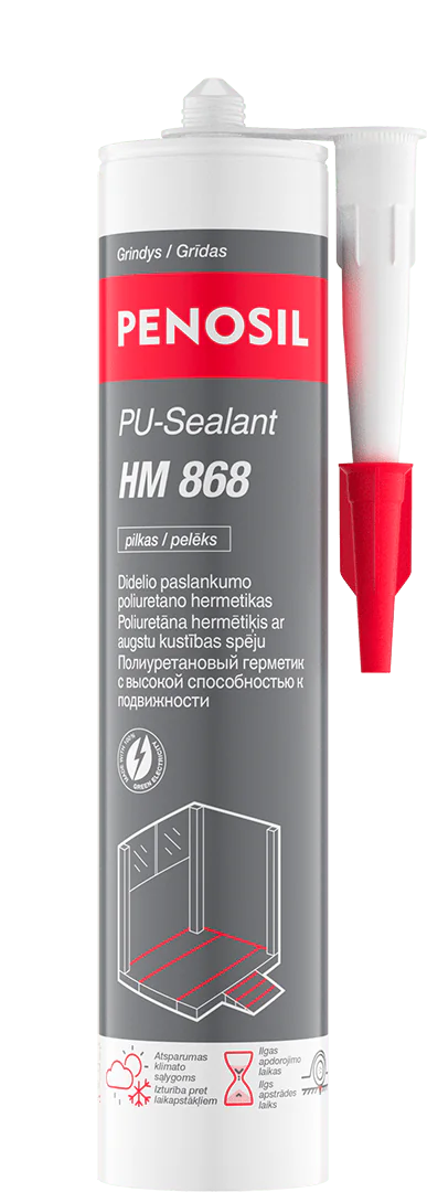 PENOSIL PU-Sealant HM 868 ir augstas kvalitātes, mitruma iedarbībā cietējošs augsta moduļa poliuretāna hermētiķis ar ļoti labu mehānisko izturību. Paredzēts smagi noslogotu iekšējo un ārējo šuvju blīvēšanai un izolācijai.