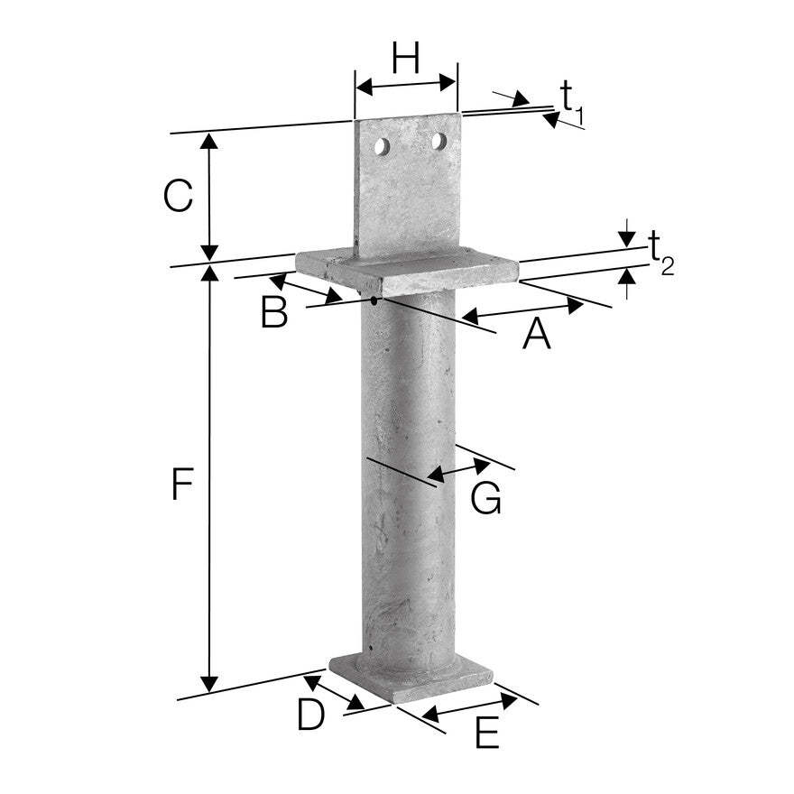 PIS MAXI kolonnas balsts ir izturīgs balstelements, kas paredzēts lielākā izmēra koka stabu nostiprināšanai un stabilizēšanai. Tas izgatavots no S235 JR tērauda (DIN EN 10025), nodrošinot augstu nestspēju un konstrukcijas drošību.