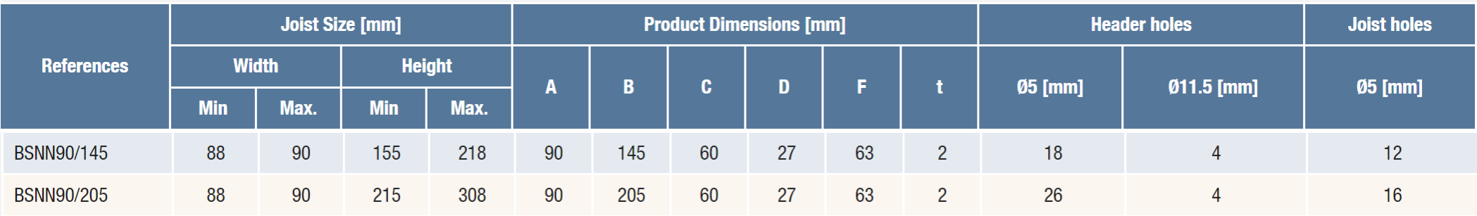 Produktu apraksts un pilna specifikācija ražotāja mājaslapā: Face Fix Hangers - BSNN | Simpson Strong-Tie (strongtie.lv)